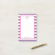 Este bloco de notas 4 x 6 que tem um fundo listrado roxo e branco com uma borda rosa e uma rua roxa inicial no centro superior e o nome do cheio no fundo é perfeito para qualquer mulher que você conheça! Com seu padrão riscado divertido é clássico e pré-disquete e ficaria maravilhoso em qualquer mesa e faria um presente perfeito para amigos, colegas de trabalho ou família.