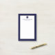 Um bloco de anotações monograma com um design monograma profissional em azul marinho. Nome e título personalizados, função ou texto personalizado apresentado em um plano de fundo branco simples, enquadrado por uma borda azul marinho. Personalize usando os campos fornecidos ou use o botão 'mensagem' para entrar em contato com o designer para obter ajuda.