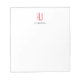Bloco De Notas Monograma moderno simples vertical branco e vermel