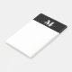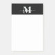 Monograma elegante no seu papel de nota pessoal Fundo preto com escrita branca e um Monograma prateado.