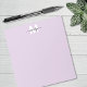 Este bloco de notas apresenta um fundo liso na cor lilás ou lavanda com uma inicial branca centralizada no topo. Seu nome aparece em caligrafia preta sobre a inicial para um toque limpo e personalizado.