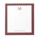 Notepad de Monograma Vermelho Dourado com Script de Na moda Chic
