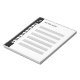 Um bloco de notas (pequeno tamanho) para músicos. Cada folha apresenta linhas de vazio de música, decoradas com um teclado de piano e notas musicais ao longo do lado. Use para juntar e preservar as músicas e letras que passam pela sua cabeça antes que desapareçam para sempre. Fácil de personalizar. Use o botão Personalizar o Ti para personalizar totalmente o design e adicionar seu próprio texto e imagens que ajudam no processo criativo. Outras placas de apagamento a seco e placas para notebook para captura de músicas e letras