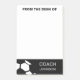 Notas preto e branco à moda modernas na moda personalizadas treinador do futebol. Uma bola de futebol geométrica dá uma sensação moderna a este bloco de notas na moda da nota de post-it. Personalize com nome no branco com fundo preto na parte inferior das notas. Um prático e personaliza o presente para um treinador do futebol da escola.