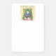 Notas pegajosas com uma pintura de aquarela branca. Uma criança de pijama e seu gatinho de estimação olhando para fora da janela na véspera de Natal. Papai Noel e sua rena voando através do céu noturno em forma de silhueta com uma grande lua de cheio iluminando seu caminho.