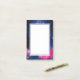 Notas pegajosas com um belo design abstrato em rosa e azul. Estrelas brancas espalhadas por toda esta imagem do cosmos. Trippy e legal. Um emaranhado branco com uma borda preta colocada sobre cima para você escrever dentro.