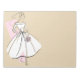 Um design de século de médio com um toque retrorreflector com desenho de linha de uma noiva em rosa e branco sobre um fundo de mudança de cor neutra. Inspirados em padrões de vestidos e ilustrações de moda dos anos 50 e 60. Um design personalizável para você personalizar com seu próprio texto, imagens e ideias. Uma imagem de arte digital original.