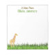 Adicione o nome do seu filho a esta adorável cena safari—um desenho de girafa em um bloco de papel de relva verde! É perfeito para a criança que ama animais e também ama escrever listas de tarefas. É uma sensação estranha e amorosa da natureza.