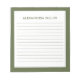 Um bloco de notas de linha profissional com um design minimalista numa paleta de cor verde-azeitona e branca. Monograma personalizado inicial e nome em um simples fundo branco, enquadrado por uma borda de oliveira. Personalize usando os campos fornecidos ou use o botão 'mensagem' para entrar em contato com o designer para obter ajuda.