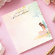 Entre num mundo encantado com esse bloco de notas caprichoso e personalizado. Uma fada delicada com asas de borboletas fica em um cenário de um jardim sonhador, acompanhada por uma borboleta flutuzenta. As cores macia e pastel criam uma atmosfera mágica e serena. Adicione seu próprio texto para personalizar este bloco de notas. Perfeito para registrar, gravar sonhos ou anotações cotidianas.