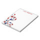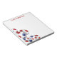 Este bloco de anotações temático de futebol apresenta um aglomerado de bolas vermelhas e azuis de futebol de tamanhos variados no canto inferior esquerdo - personalize com o nome do treinador, atleta ou fã no topo do bloco de anotações - por katz_d_zynes