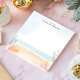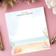 Escapar para a costa com este bloco de notas personalizado e calmo. Uma cena serena de praia, cheia de areia, ondas suaves, conchas, e verde sutil, enfeita a borda inferior. As cores macia e pastel evocam um senso de tranquilidade. Personalize este bloco de notas com o seu próprio texto para um toque pessoal. Perfeito para combinar planos de férias, notas de casa de praia, ou lembretes do dia a dia.