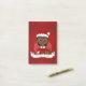 Design com uma ilustração de uma linda e sorridente menina negra feliz com cabelo curto, ela está vestindo fantasia vermelha e branca do Papai Noel e segurando um presente; com texto editável modelo para seu nome ou mensagem, design de Natal com fundo vermelho