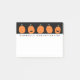Diversão das notas de feriado do Dia das Bruxas, com fileira de desenhos animados Jack-o-lanternas. Editar texto para personalizar.