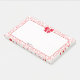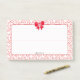 Use o modelo de texto fácil para adicionar seu nome, iniciais ou monograma. Mostre o amor quando você personalizar suas anotações para este feriado de Dia de os namorados com um simples padrão aleatório de coração vermelho aberto. Há uma estrutura de rabisco com bordas onduladas suaves aparadas com um arco vermelho. A área escrevendo tem linhas desbotadas e seu nome na parte inferior. As notas adesivas jumbo são uma ideia divertida para pequenos presentes ou favoritos para festas para amigos, familiares ou colegas de trabalho.