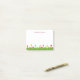 Tulipa ilustração das tulipas à sombra de rosa e amarelo na grama verde no fundo das notas. Personalize com seu nome ou mensagem em fonte roxa rosa profunda.