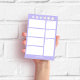 Púrpura bonita posta-a com flores pastel e personalização de nomes personalizados. Um design super-útil com espaço dedicado para chamadas, emails, ordens, tarefas, compromissos, eventos e tarefas!
