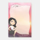 Um posto elegante que ele faz nota de apresentar uma moça de desenho em uma paisagem de fantasia no pôr do sol.