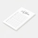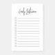 Moderno, simples de fazer lista personalizada de bloco de notas com nome. Cabeçalho de nome de script de tendência casual com 12 linhas de tarefa com caixas de seleção. Texto preto sobre fundo branco.