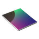 Este notável bloco de notas apresenta uma imagem digitalmente criada que se assemelha à crescente de um planeta escuro cercado por uma aurora cósmica de verde, azul, roxo e rosa.