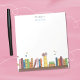 Um pequeno bloco de notas fofo personalizado para educadores com ilustração aquarela de livros numa prateleira. © ArianeC Ilustrações — Todos os direitos reservados