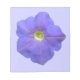 Este notável bloco apresenta uma foto de uma petúnia azul com tons de roxo e um centro branco.