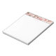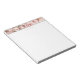 Bloco de notas mostrado com borda floral de impressão cor rosa-rosa-esbranquiçada no topo com uma borda verde-acinzentada personalizada. Texto de "A Noiva" em um sussurro, cor-de-rosa esmagado em cima sob a borda do impressão. Personalize este item ou comprar como está.