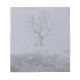 Uma paisagem 3D fria e ventosa no inverno, criada em Vue. Em cima de uma colina branca com gelo e neve, contra um céu de cinza tempestuoso com chuva ou manga caindo firmemente, uma árvore de bordo solitária e nua se posiciona com um banco de madeira embaixo dela.