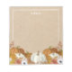 Bloco de notas de outono branco com uma fronteira inferior de abóboras laranja e brancas e flores de aquarela pálidas. O fundo é um gráfico de papel-pergaminho com uma borda branca. No topo, você pode adicionar seu nome ou deixar como anotações. Um pedaço de abóbora-do-campo gravado com uma vibração artística que dá uma prenda de campo na moda.