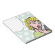 Este bloco de notas branco traz um sorriso aos seus lábios. O Bloco Notepad do Discurso de Arte Pop apresenta uma adorável jovem aplicando batom vermelho e uma bolha de discurso que está pronta para guardar suas palavras de sabedoria. A garota e a bolha de fala estão em azul de ovo de um robin, fundo de bolinhas. Estas parecem excelentes numa cesta de presentes para um doce aniversário de 16 anos!