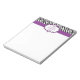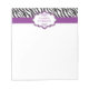 Este bloco de anotações é sobre ser uma menina feminina. A impressão zebra faz um fundo impressionante para um quadro de ornamentado em uma fita roxa brilhante e bolinhas. Um nome ou outra mensagem é mostrado no quadro rodeado por ornamentos encaracolados. Disponível em cores alternativas com produtos correspondentes.