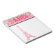 Uma Torre Eiffel cor-de-rosa decora este bloco de notas temático de Paris. Use este bloco de notas bonito para trabalhar, casa, escritório, negócios, escola, etc...O design é da arte original.