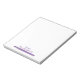 Um pequeno bloco de notas bonito com uma caneta roxa. Personalize-o com seu próprio texto e seu nome usando o campo modelo fornecido. © ArianeC Ilustrações — Todos os direitos reservados