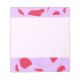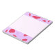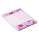 Este Bloco de Notas apresenta bordas de tulipas vermelhas desenhadas pela mão superior e inferior sobre um fundo lilático. A área escrevendo é rosa pálido.