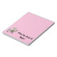 Alpaca duo. Duas bonecas alpaca em crochê. Cabelos na cabeça, cada um vestindo um cobertor. Eles ficam no canto inferior esquerdo do papel cor-de-rosa. À direita está o texto "Da mesa de ..." com um nome que você personaliza.