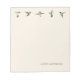 Este bloco de notas é um presente excelente para um amante de beija-flor. Apresenta diferentes espécies de beija-flores da América do Norte, como Ruby-throated, Rufous e um beija-flor da raça negra. O estilo da fonte, o tamanho da fonte e a cor podem ser alterados clicando em "personalizar mais". Todas as imagens de aves são tiradas de pinturas de aquarela originais de Christiane Dobbins.