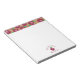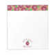 Um bloco de notas projetado para educadores com borda de maçã no topo e uma maçã vermelha solteiro no fundo. No texto lê-se "Da secretária de". Personalize-o com o nome da pessoa para quem é. © ArianeC Ilustrações — Todos os direitos reservados