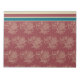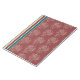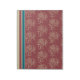 Um elegante Notepad ou Jotter, com um padrão floral formalizado e listras de deckcadeira em bege e azul escuro sobre um fundo rico e burgundy.