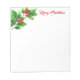 Notepad mostrado em branco com um impressão feriado holly com texto vermelho Feliz Natal. Personalize este item ou comprar como está.