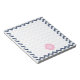 Um bloco de anotações com um design icat chevron azul. Personalize com seu monograma sobre design de folha de papel cor-de-rosa.