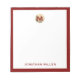 Eleve seu jogo de anotações com este luxuoso bloco de anotações personalizado apresentando um monograma de ouro metálico escovado no topo e seu nome na tipografia clássica no fundo, elegantemente emoldurado em vermelho. Perfeito para juntar ideias, fazer anotações ou listas de fazeres, este bloco de notas faz um presente de excelente para você ou alguém especial.