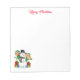 Notepad mostrado em branco com um boneco de neve festivo de Natal, elfos e presentes impressão de arte. Personalize este item ou comprar como está. Imagem do stock freepik.com