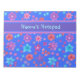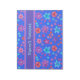 Um Notepad ou Jotter bonito, personalizável, com um padrão de flores em roxo, turquesa, rosa e laranja sobre fundo azul-céu, de uma colagem de papel pintada à mão por Judy Adamson. Você pode mudar facilmente a cor do plano de fundo, se desejar, usando o botão Editar.