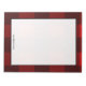 Um bloco de notas com uma seção central de folhas sobre um plano de fundo vermelho e xadrez preto inspirado no flanela. Personalize com seu nome em preto.