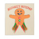 Este incrível bloco de anotações apresenta um desenho fofo de um homem colorido de pão de gengibre. Ele tem botões vermelhos e verdes, um sorriso grande em seu rosto e bruxas vermelhas e verdes em volta de suas pernas prontas para uma festa de Natal. Há texto personalizável no topo do bloco de notas, permitindo que você o personalize para si mesmo ou o transforme em um presente adorável para outra pessoa.