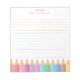 Brilhe sua sala de aula com este animado bloco de anotações, personalizado com seu nome, com o lápis do arco-íris. Projetado para notas rápidas, lembretes ou mensagens de estudantes, este material colorido é um presente pensativo para professores, assessores ou pais que escolheram em casa. Um toque doce e prático para a Semana de Apreciação do Professor ou presentes de volta à escola.