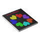 Este notável bloco apresenta uma imagem digitalmente criada de um círculo de corações amorosos. Cada coração tem uma cor diferente do arco-íris. Os corações vermelho, laranja, amarelo, verde, azul, indigo e violeta são uma forma divertida de expressar seu amor por um namorado, namorada, marido ou esposa. O fundo é preto para criar o impacto máximo. Há um texto personalizável no topo que permite personalizar este bloco de notas para si próprio ou transformá-lo num presente de excelente para outra pessoa.