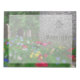 Um cemitério tranquilo no primavera, encheu um motim de flores, papoilas, dentes-de-leão, e muitas outras flores borrifadas pela grama verde e entre as pedras. No primeiro plano está uma lápide gravada com uma cruz Celta e a palavra "Resurgam" - Latim para "Eu vou levantar de novo".