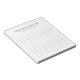 Um bloco de notas com uma design minimalista. Nome personalizado e função de posição de título e texto da empresa ou personalizado apresentado em azul e ouro em um plano de fundo branco simples. Personalize usando os campos fornecidos ou use o botão 'mensagem' para entrar em contato com o designer para obter ajuda.