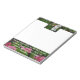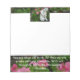 Notepad, tamanho x6 de 5,5", com estátua Buda descansando entre flores cor-de-rosa, folhagem verde.
